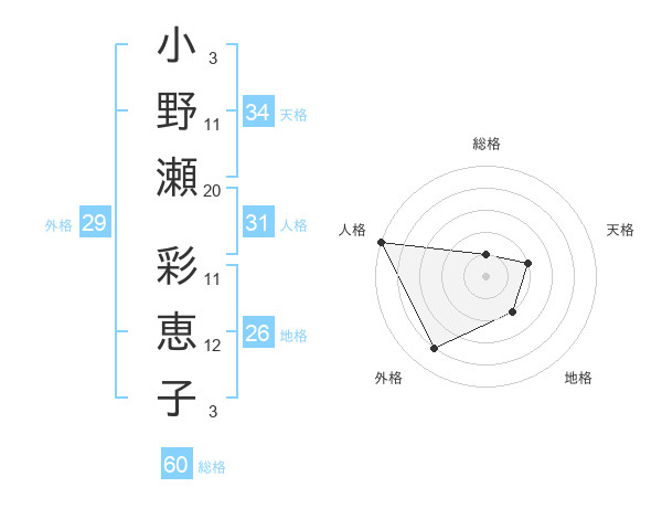 小野瀬 彩恵子さんを姓名の画数から五運を鑑定
