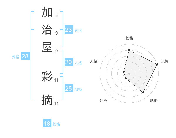 加治屋 彩摘さんの総格は48画の4点