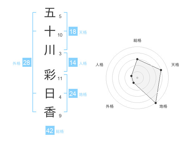 五十川 彩日香さんを姓名の画数から五運を鑑定