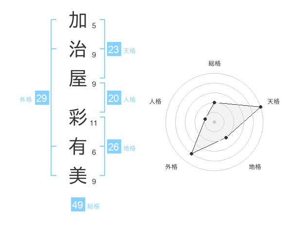 加治屋 彩有美さんを姓名の画数から五運を鑑定