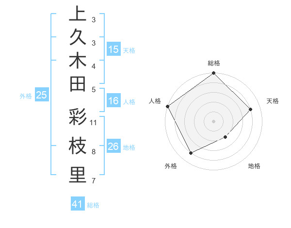 上久木田 彩枝里さんを姓名の画数から五運を鑑定