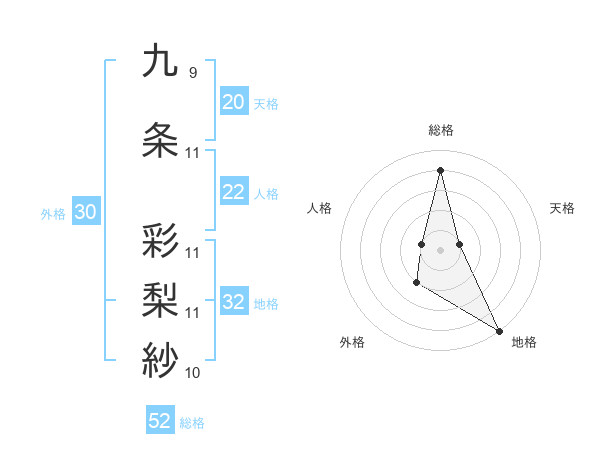 九条 彩梨紗さんの総格は52画の4点!