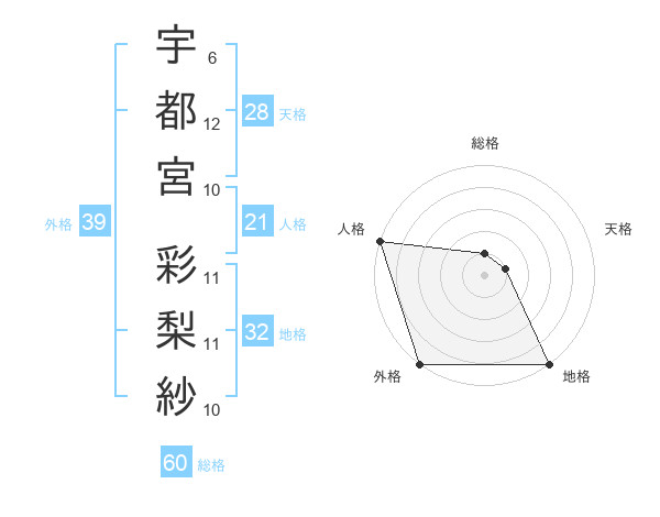 宇都宮 彩梨紗さんの総格は60画の1点!