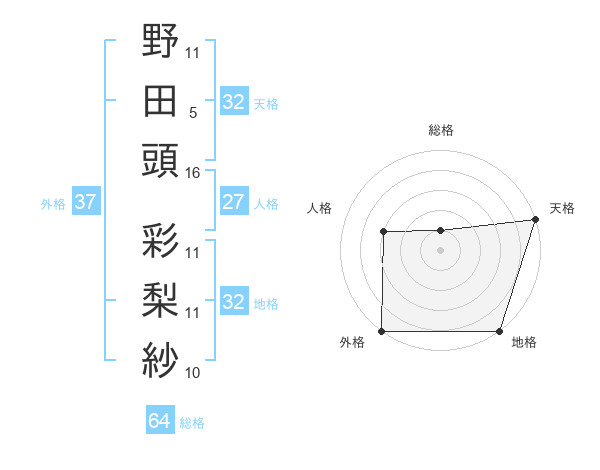 野田頭 彩梨紗さんを姓名の画数から五運を鑑定