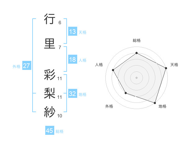 行里 彩梨紗さんを姓名の画数から五運を鑑定