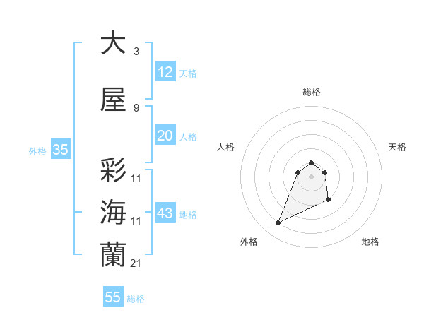 大屋 彩海蘭さんを姓名の画数から五運を鑑定
