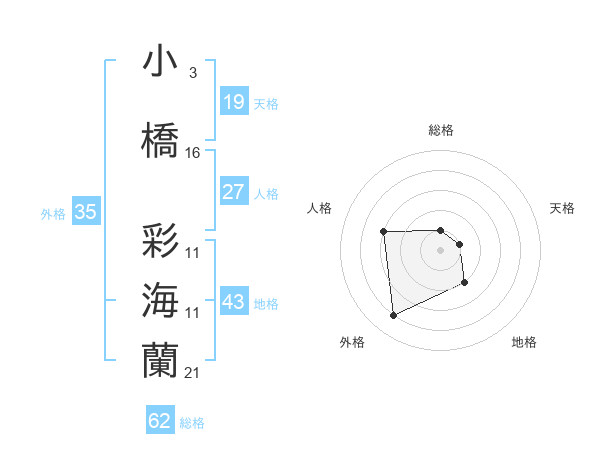 小橋 彩海蘭さんを姓名の画数から五運を鑑定