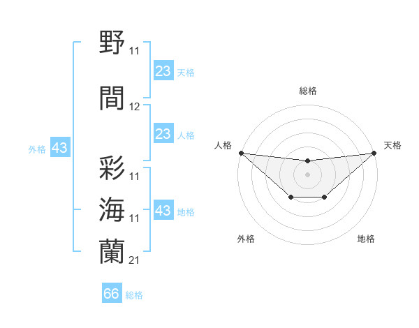野間 彩海蘭さんを姓名の画数から五運を鑑定