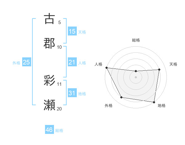 古郡 彩瀬さんを姓名の画数から五運を鑑定