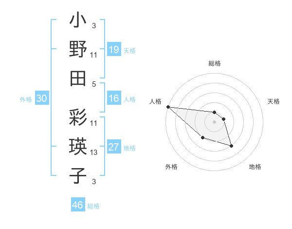 小野田 彩瑛子さんを姓名の画数から五運を鑑定
