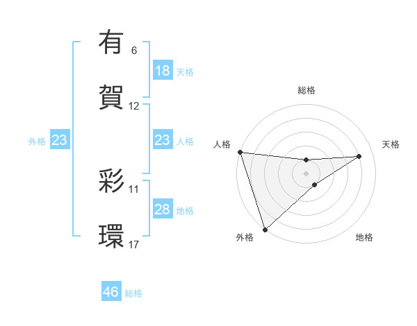 有賀 彩環さんを姓名の画数から五運を鑑定