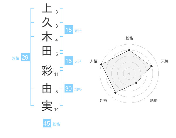 上久木田 彩由実さんを姓名の画数から五運を鑑定