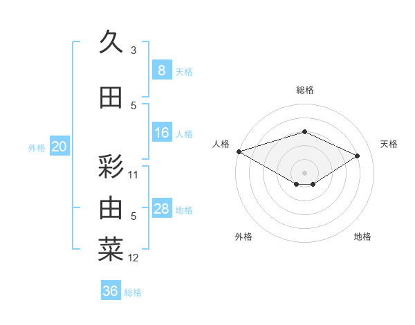久田 彩由菜さんの天格は8画の4点!