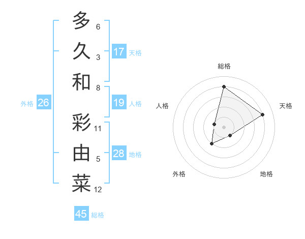 多久和 彩由菜さんを姓名の画数から五運を鑑定