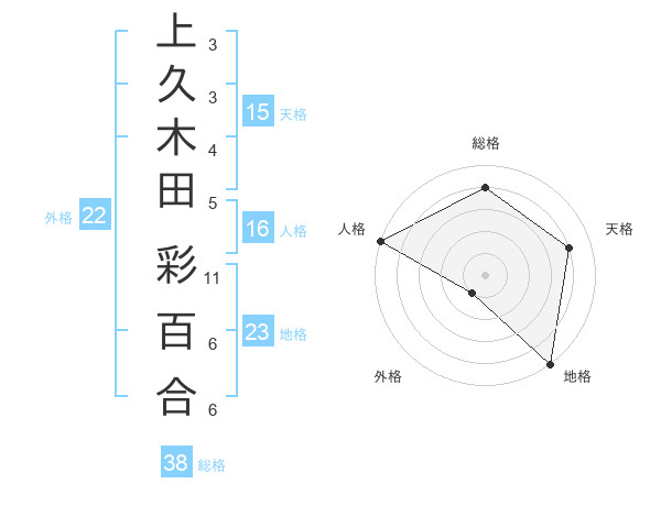 上久木田 彩百合さんを姓名の画数から五運を鑑定