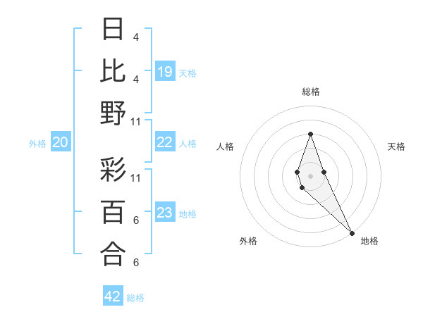 日比野 彩百合さんを姓名の画数から五運を鑑定