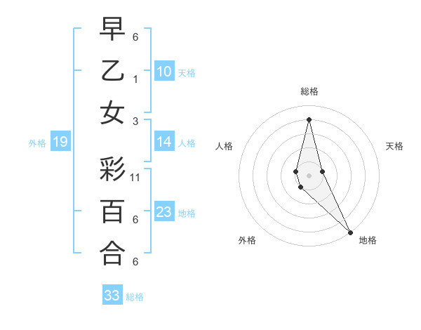 早乙女 彩百合さんの総格は33画の4点!