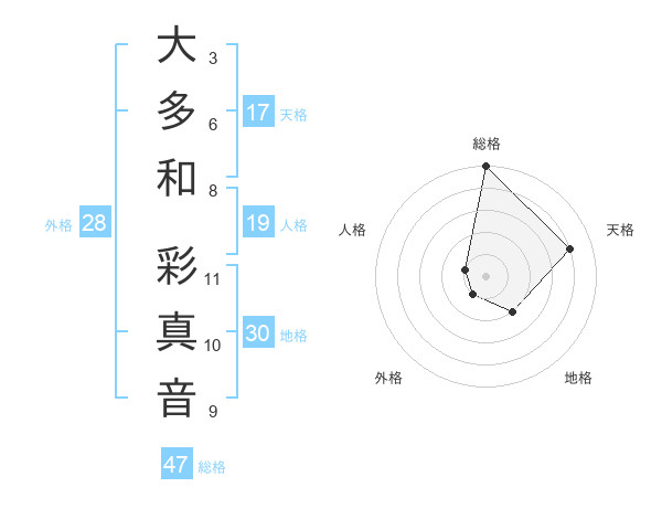 大多和 彩真音さんを姓名の画数から五運を鑑定