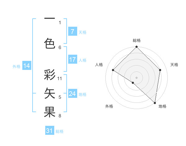 一色 彩矢果さんを姓名の画数から五運を鑑定
