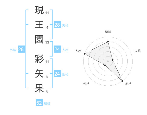 現王園 彩矢果さんを姓名の画数から五運を鑑定