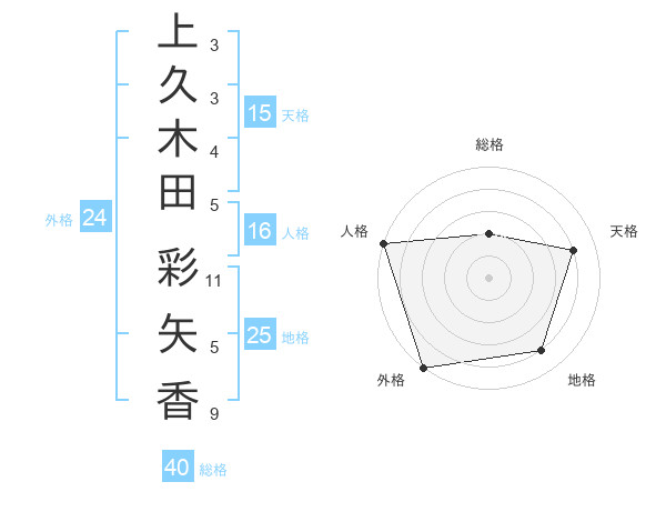上久木田 彩矢香さんを姓名の画数から五運を鑑定