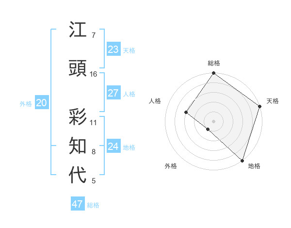 江頭 彩知代さんの総格は47画の5点!
