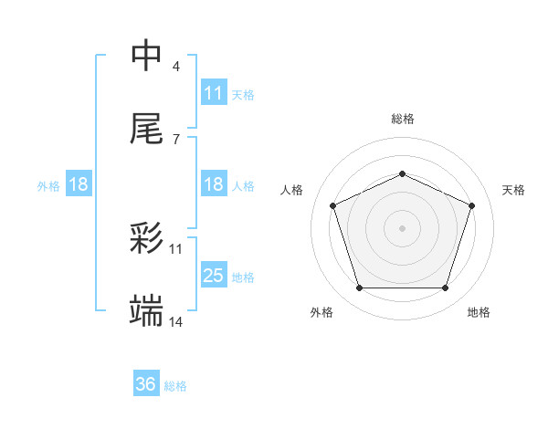 中尾 彩端さんを姓名の画数から五運を鑑定