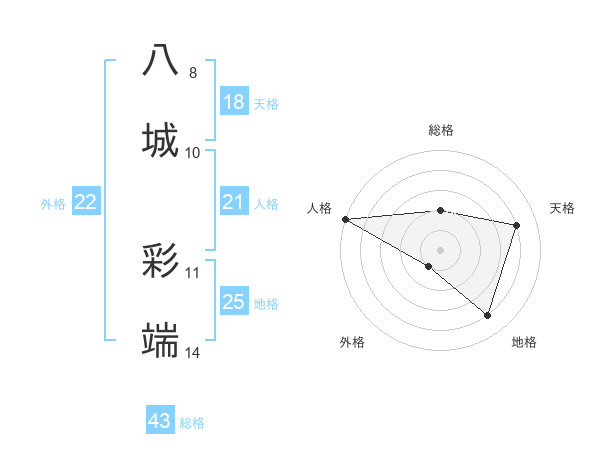 八城 彩端さんの総格は43画の2点!
