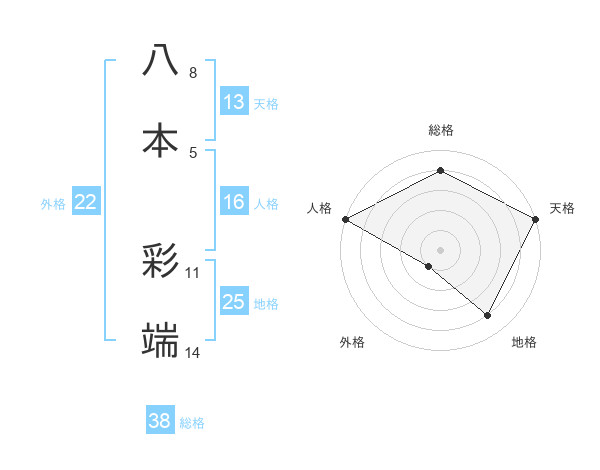 八本 彩端さんの総格は38画の4点!