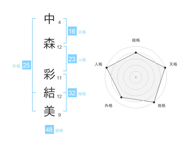 中森 彩結美さんを姓名の画数から五運を鑑定