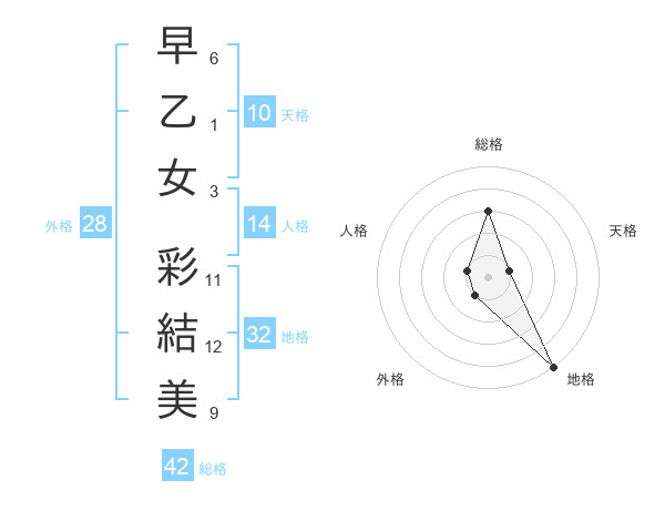 早乙女 彩結美さんの総格は42画の3点!
