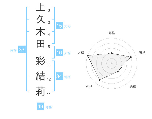 上久木田 彩結莉さんを姓名の画数から五運を鑑定