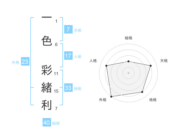 一色 彩緒利さんを姓名の画数から五運を鑑定