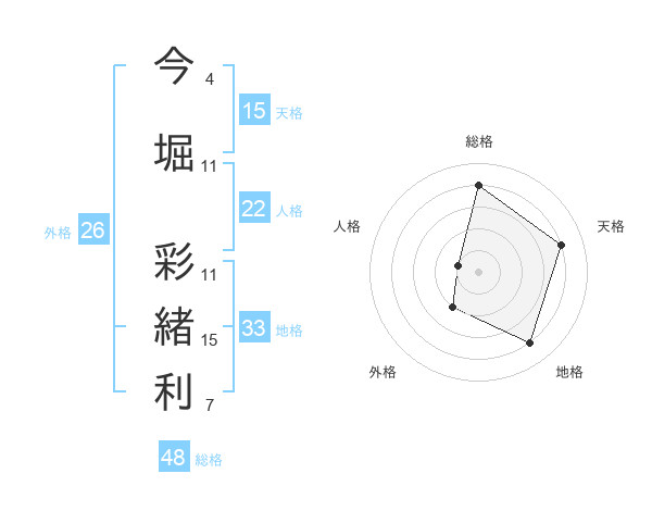 今堀 彩緒利さんを姓名の画数から五運を鑑定