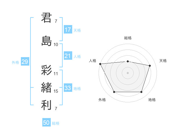 君島 彩緒利さんを姓名の画数から五運を鑑定