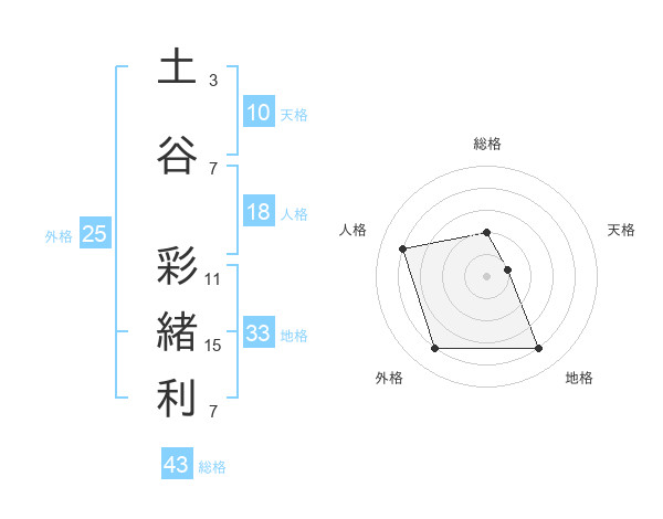 土谷 彩緒利さんの総格は43画の2点!
