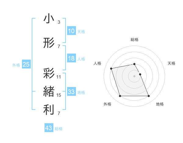 小形 彩緒利さんを姓名の画数から五運を鑑定