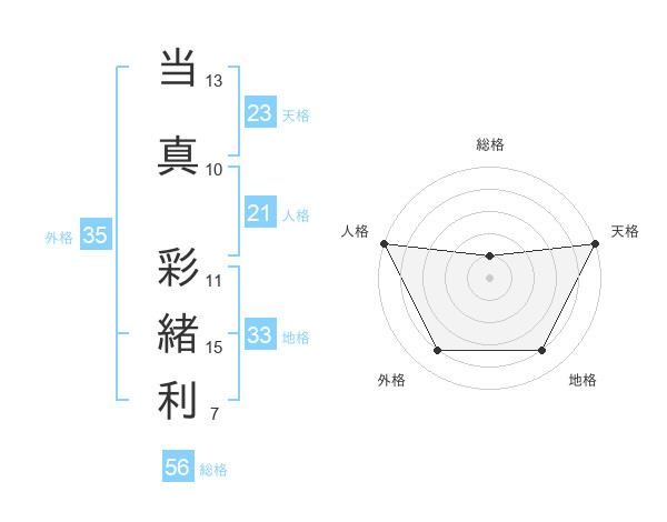 当真 彩緒利さんを姓名の画数から五運を鑑定