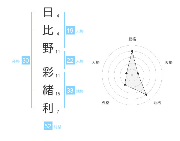日比野 彩緒利さんを姓名の画数から五運を鑑定