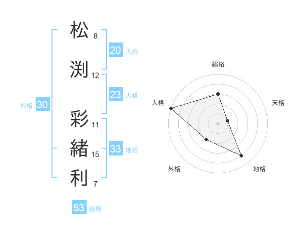 松渕 彩緒利さんの総格は53画の3点!