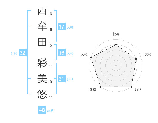 西牟田 彩美悠さんを姓名の画数から五運を鑑定