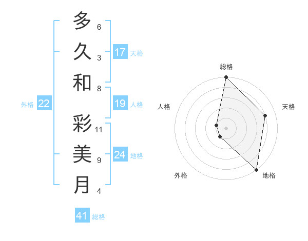 多久和 彩美月さんを姓名の画数から五運を鑑定