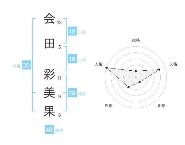 会田 彩美果さんを姓名の画数から五運を鑑定