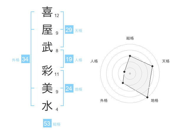 喜屋武 彩美水さんを姓名の画数から五運を鑑定