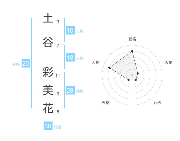 土谷 彩美花さんを姓名の画数から五運を鑑定