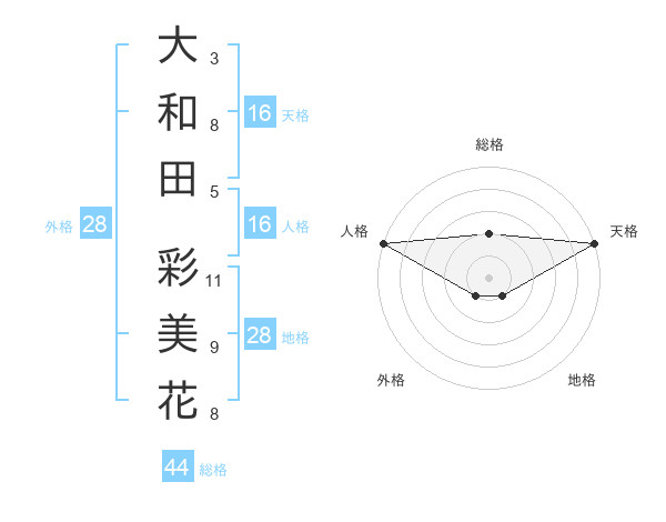 大和田 彩美花さんを姓名の画数から五運を鑑定