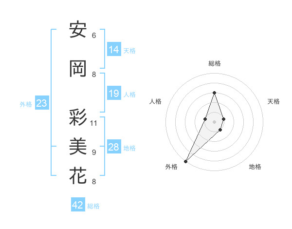 安岡 彩美花さんを姓名の画数から五運を鑑定