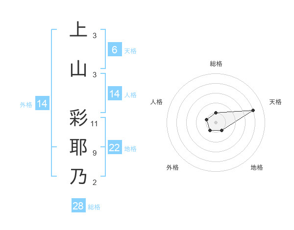 上山 彩耶乃さんの天格は6画の4点!