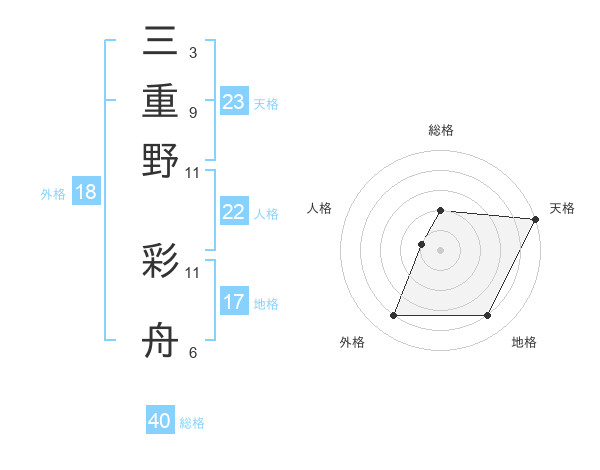 三重野 彩舟さんを姓名の画数から五運を鑑定