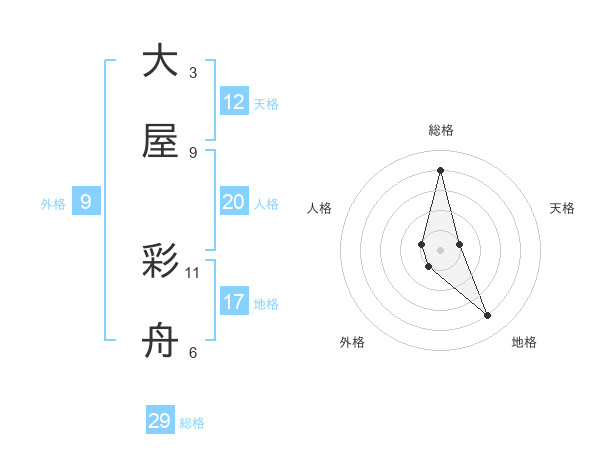大屋 彩舟さんを姓名の画数から五運を鑑定